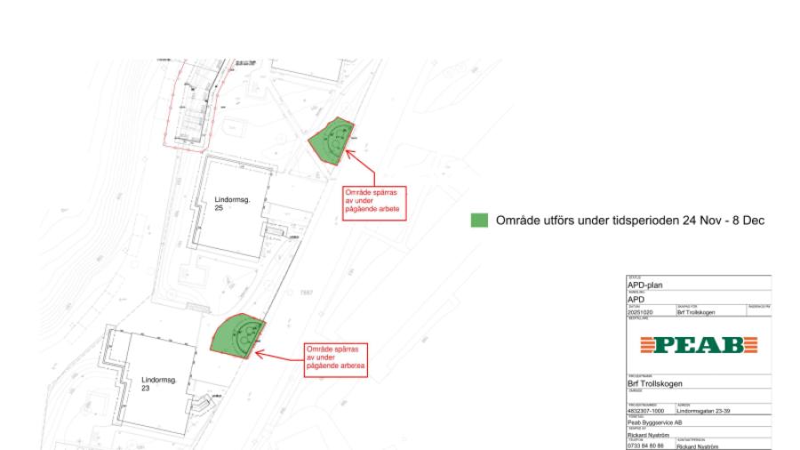 Se den nya uppdaterade APD-planen på nya arbetsområden i trapphusen. (bifogat)